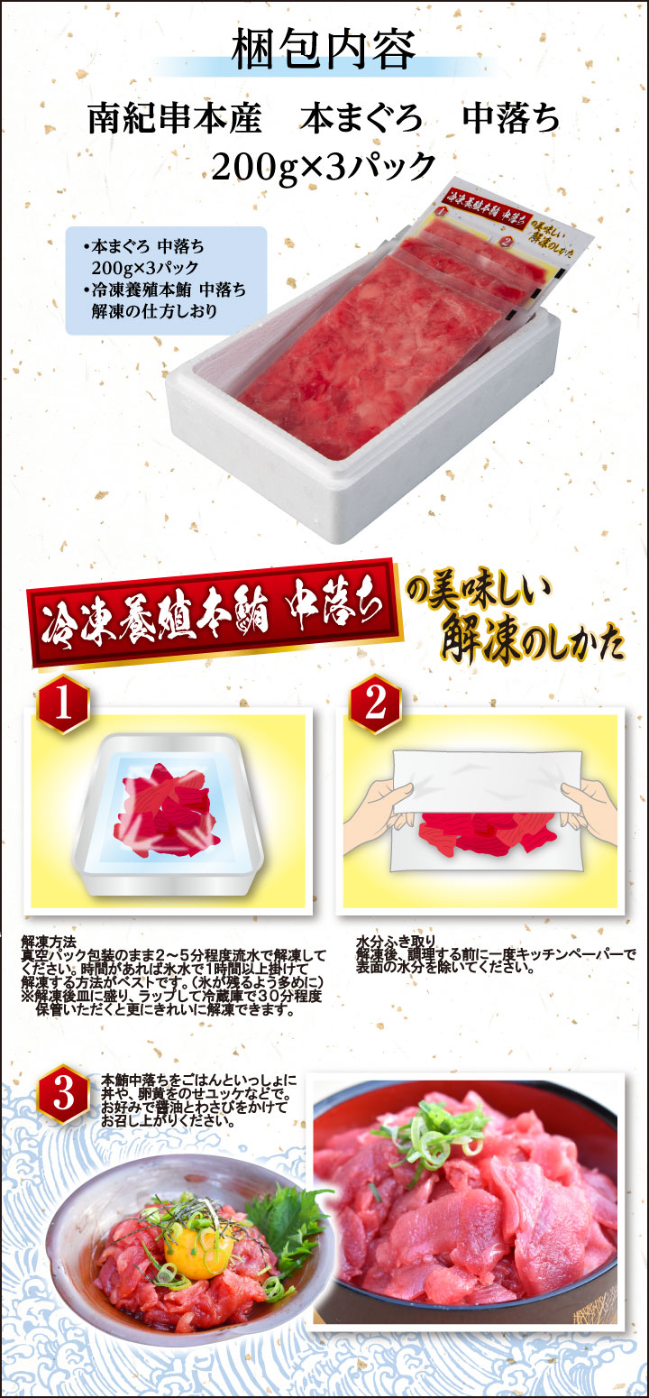本まぐろ中落ち 200g×3パック 和歌山県串本産